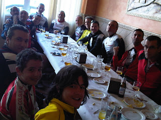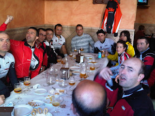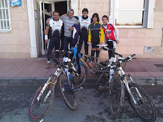 Tras la foto hemos rodado por separado los de carretera y los de montaña, para vernos a las 12:00 h en la cafetería Dublín y hacer un almuerzo de hermandad.